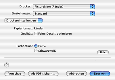 Das Dialogfeld Drucken ist eine Standardfunktion von Mac OS X. Einzelheiten finden Sie in der Dokumentation des Betriebssystems.