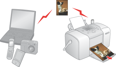 Nhere Informationen zum Drucken von Bluetooth-fhigen Mobiltelefonen, Digitalkameras, Digital-Videokameras, PDAs, mobilen PCs und anderen Gerten erhalten Sie in der Dokumentation des Gerts und des Druckers.