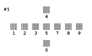 Suchen Sie in den Justage-Mustern der einzelnen Stze den Block, der am gleichmigsten gedruckt ist und keine wahrnehmbaren Streifen oder Linien enthlt.