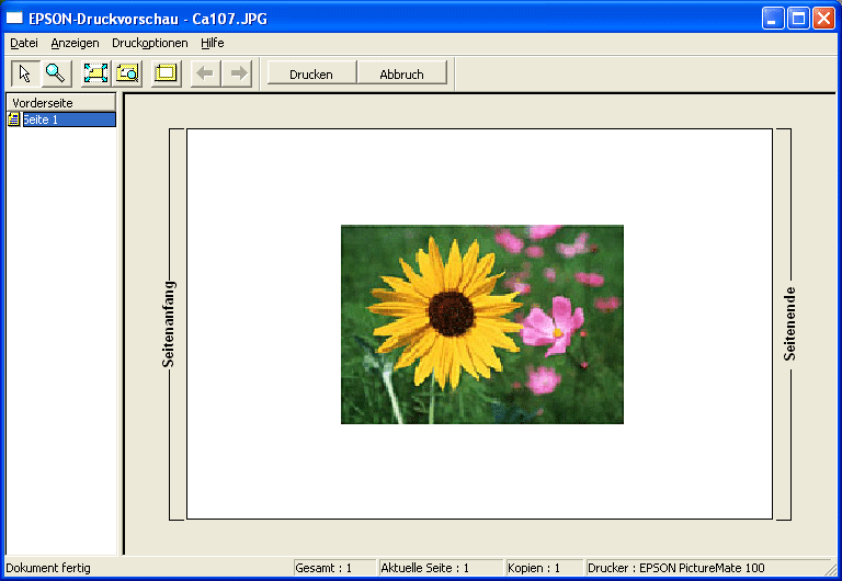 Wenn Sie einen Druckauftrag an den Drucker abschicken, wird das Fenster Druckvorschau angezeigt, und Sie knnen vor dem Drucken noch nderungen vornehmen.