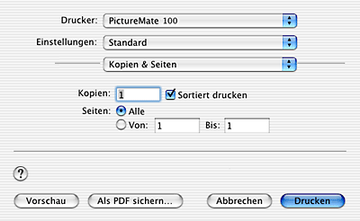 In diesem Dialogfeld knnen Sie die Einstellungen Exemplare und Seiten zum Drucken vornehmen.