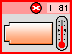 Die Temperatur der Batterie ist nicht normal. Schalten Sie die Stromversorgung aus und warten Sie, bis die Temperatur der Batterie abnimmt. |