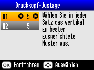 Drücken Sie oder , um Druckkopf-Justage hervorzuheben, und drücken Sie dann .