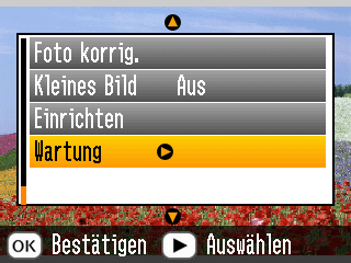 Drücken Sie oder , um Wartung hervorzuheben, und drücken Sie dann .