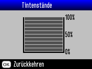 In einer grafischen Anzeige wird daraufhin die verbleibende Tintenmenge angezeigt.