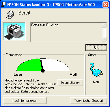 Klicken Sie auf die Schaltfläche EPSON StatusMonitor. Das Dialogfeld EPSON StatusMonitor wird eingeblendet.
