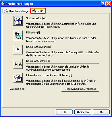Mit den EPSON-Drucker-Utilities können Sie den aktuellen Druckerstatus überprüfen und einige Wartungsarbeiten vom Computer aus durchführen.
