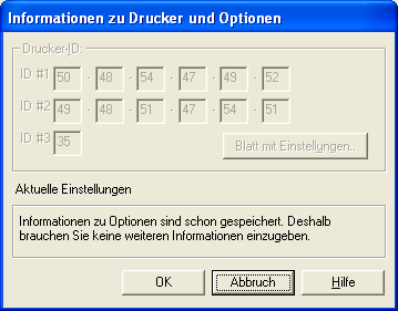 Je nach Konfiguration Ihres Systems werden die im Dialogfeld Informationen zu Drucker und Optionen angezeigten Informationen entweder automatisch aktualisiert oder müssen manuell aktualisiert werden.