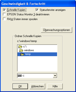 Wenn das Statusfenster immer angezeigt werdern soll, sobald Sie einen Druckvorgang starten, aktivieren Sie das Kontrollkästchen Statusfenster anzeigen.