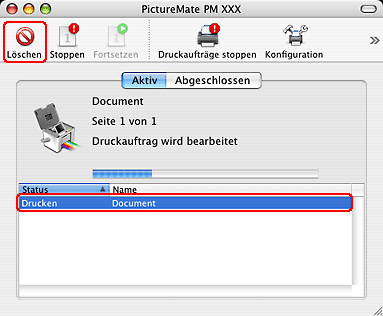 Klicken Sie auf die Schaltfläche Löschen, um den Druckauftrag abzubrechen.