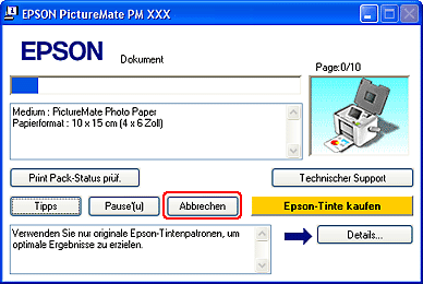 Klicken Sie auf die Schaltfläche Abbrechen, um den Druckvorgang abzubrechen.