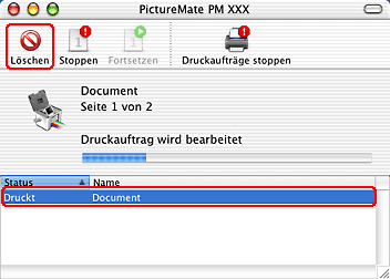 Klicken Sie auf die Schaltfläche Löschen, um den Druckauftrag abzubrechen.