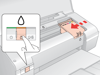 Drücken Sie die Taste  Tinte. Der Druckkopf bewegt sich in die Tintenpatronen-Austauschposition und die  Stromanzeige beginnt zu blinken.