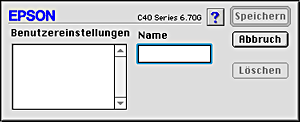 • Die Namen der von EPSON vorgegebenen Einstellungen oder Farbanpassungsmethoden können nicht für Benutzereinstellungen vergeben werden.