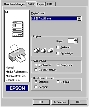 In der Registerkarte Papier können Sie folgende Einstellungen vornehmen: