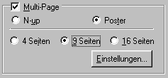 Durch Markieren des Kontrollkästchens Multi-Page können Sie zwischen den Einstellungen N-up und Poster wählen. Näheres finden Sie jeweils im entsprechenden Abschnitt weiter unten.