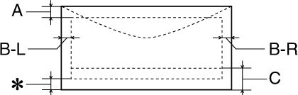 Sie können den unteren minimalen Rand auf 3 mm erweitern, indem Sie unter Windows in der Registerkarte Papier bzw. für Macintosh im Dialogfeld Seite einrichten die Option Maximal als druckbaren Bereich wählen. Im erweiterten Druckbereich kann die Druckqualität jedoch abnehmen. Ehe Sie große Druckaufträge mit dieser Einstellung ausführen, vergewissern Sie sich anhand eines Probeausdrucks, ob die Druckqualität zufrieden stellend ist. |