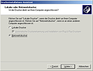 Wählen Sie Netzwerkdrucker und klicken Sie anschließend auf Weiter.
