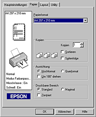 In der Registerkarte Papier können Sie folgende Einstellungen vornehmen: