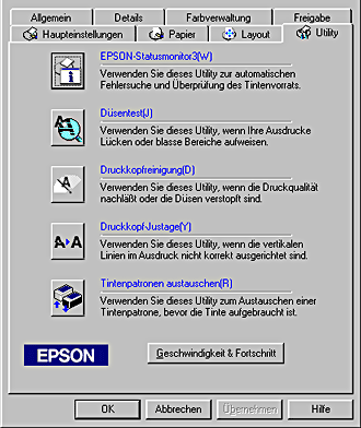 Mit den EPSON Drucker-Utilitys können Sie den aktuellen Druckerstatus prüfen und bestimmte Wartungseingriffe vom Computer aus erledigen.