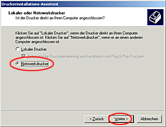 Wählen Sie Netzwerkdrucker und klicken Sie anschließend auf Weiter.