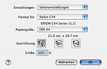 Wählen Sie in Ihrer Anwendung im Menü Ablage die Option Papierformat. Das Dialogfenster Seiteneinrichtung wird aufgerufen.