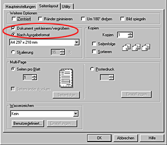 Markieren Sie das Kontrollkästchen Passend auf Seite im Dialogfenster Layout.