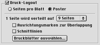 Markieren Sie das Kontrollkästchen Druck-Layout im Dialogfenster Layout und wählen Sie dann Poster.