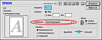 Normalpapier bedrucken (Mac OS 8.6 bis 9.x)