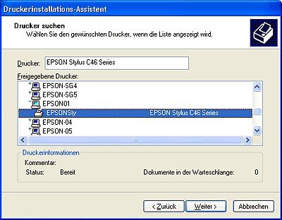 In diesem Abschnitt wird beschrieben, wie der freigegebene Drucker im Netzwerk verwendet werden kann. Wenden Sie sich an Ihren Netzwerkadministrator, wenn Sie den Drucker direkt in ein Netzwerk einbinden möchten, ohne ihn freizugeben.