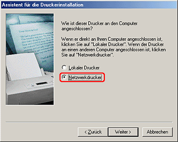 Wählen Sie Netzwerkdrucker aus und klicken Sie anschließend auf Weiter.