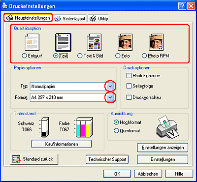 Klicken Sie auf die Registerkarte Haupteinstellungen und nehmen Sie die Einstellungen für Qualitätsoptionen vor. Hinweise zu den Einstellungen für Qualitätsoptionen finden Sie im folgenden Abschnitt. Siehe Qualitätsoptionen