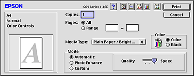 The Mode settings give you three levels of control over the printer software, as explained below.