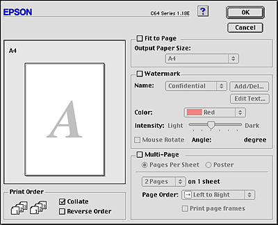 Prints a text or image as a watermark on your printout.