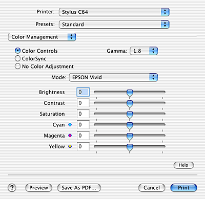 Selecting Color Management from the pop-up menu gives you control over the color matching and adjustment methods provided with the printer driver. Use these settings to experiment with new printing ideas or to fine-tune a range of print settings to meet your individual needs. Once you are satisfied with your new settings, you can add them to the Custom Settings list in the Print dialog box.