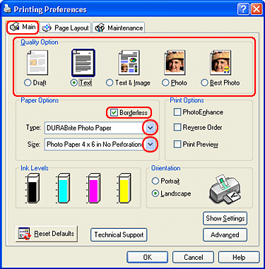 After you have loaded the media, change your printer driver settings for Borderless printing.