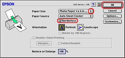 Select Stylus C64 (Sheet Feeder - Borderless) as the Format for setting.