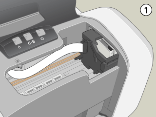 Nehmen Sie die alte Tintenpatrone erst heraus, wenn Sie eine Ersatztintenpatrone bereitgelegt haben. Die in den Düsen noch verbleibende Resttinte kann andernfalls austrocknen.