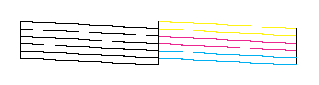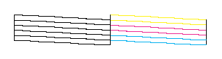 Wird die Düsentestseite nicht ordnungsgemäß ausgedruckt, liegt das Problem beim Drucker. Möglicherweise ist eine Düse verstopft oder der Druckkopf ist schlecht justiert. Hinweise zum Reinigen des Druckkopfs finden Sie im Abschnitt Druckkopf reinigen. Informationen zum Justieren des Druckkopfs finden Sie unter Druckkopf-Justage. Die Testseite des Düsentests zeigt auch den Tintenfüllstand in jeder Tintenpatrone an. Die auf der Düsentestseite aufgeführte Prozentangabe bezeichnet einen ungefähren Wert.