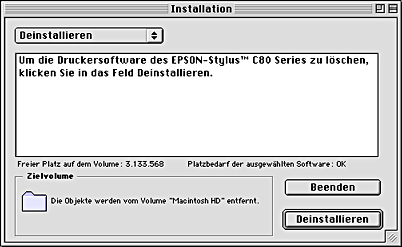 Wählen Sie aus dem Pull-Down-Menü oben links die Option Deinstallieren und klicken Sie dann auf Deinstallieren.
