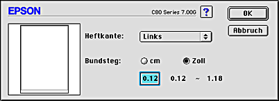 Legen Sie die Breite des Bindungsrands im Textfeld Bindungsrand fest. Sie können eine beliebige Breite zwischen 3 mm und 30 mm wählen.