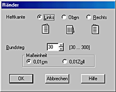 Legen Sie die Breite des Bindungsrands im Textfeld Bindungsrand fest. Sie können eine beliebige Breite zwischen 3 mm und 30 mm wählen.