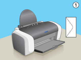 ![]() | Legen Sie Briefumschläge mit der kurzen Seite voran und der Umschlagklappe an der linken Seite ein, wie in der Abbildung dargestellt. |