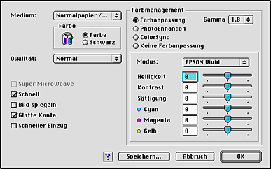 Einstellungen der Druckersoftware / Mac OS 8.6 bis 9.x