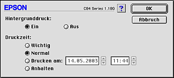 ![]() | Wählen Sie entsprechend die Einstellung Wichtig, Normal, Drucken am oder Anhalten als Druckzeitoption aus. |