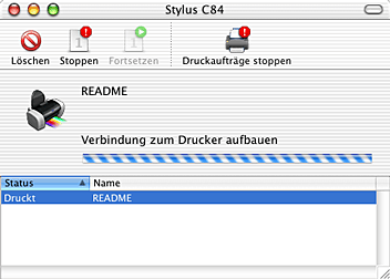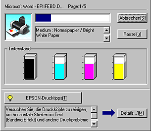 Mit Hilfe des Fortschrittsbalkens oder des EPSON Spool Managers ist es möglich, den laufenden Druckauftrag abzubrechen. Näheres finden Sie jeweils im entsprechenden Abschnitt weiter unten.