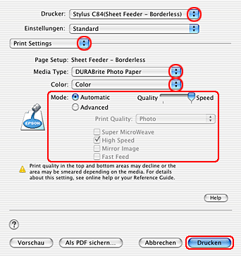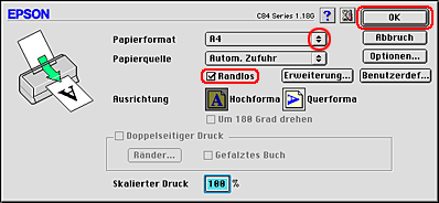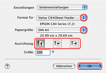 Wählen Sie Stylus C84 (Sheet Feeder - Borderless) als Einstellung für Format aus.