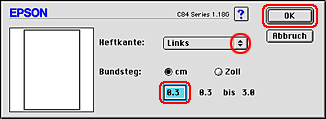 Der tatsächliche Bindungsrand kann abhängig von der Anwendung von den vorgegebenen Einstellungen abweichen. Drucken Sie einige Testseiten aus, bevor Sie den gesamten Druckauftrag starten.