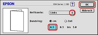 Wählen Sie cm oder Zoll als Einstellung für Maßeinheit aus. Legen Sie dann die Breite des Bindungsrands fest. Sie können eine beliebige Breite zwischen 3 und 30 mm bzw. 0,12 und 1,18 Zoll eingeben.