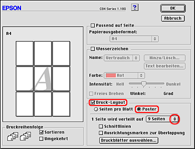 Aktivieren Sie das Kontrollkästchen Multi-Page im Dialogfenster Layout und wählen Sie dann Posteraus.